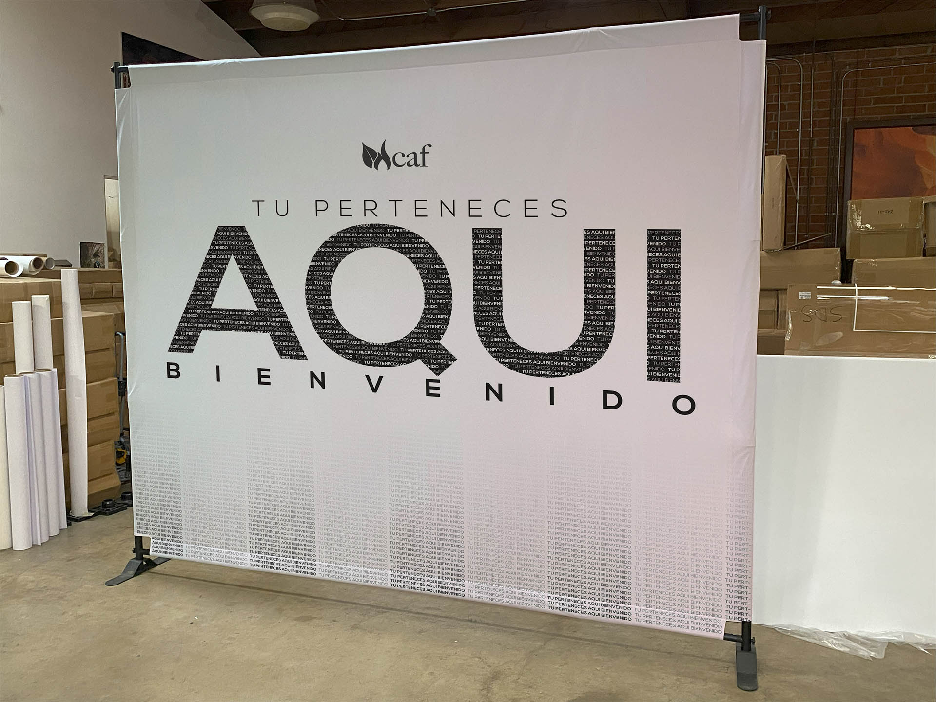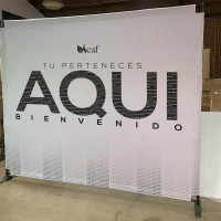 This large banner frame (Slider) is a great alternative to standard pop up backwall displays. The Slider frame can adjust from an 81" to 120" width & 41.5" to 96" height display. Pole pockets are sewn on top and bottom of the fabric print. The frame is constructed out of 1.5" telescopic poles that slide, allowing multiple graphic sizes to be used on the display.